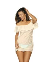 Velmi ženská tunika s jemným výstřihem. Můžete ji nosit na jednom nebo na obou ramenou, vypadá krásně v jakémkoli provedení. Vrchní díl má elastický pásek, takže dokonale přiléhá k tělu. Volán je módní plážový trend inspirovaný žhavým kubánským stylem. Tkanina je pružná, měkká a příjemná na dotek, se smyslným efektem lehké průhlednosti. Tuniku si můžete vybrat z několika krásných plážových barev.