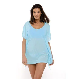 Hladký plážový přehoz z nové kolekce Marko. Potěší vás véčkovým výstřihem, který mírně spadá na ramena, a také volánkem a bočními šňůrkami, díky nimž si můžete jemně upravit délku přehozu. Krátké rukávy a měkká, pružná italská tkanina, jako je módní síťovaný tyl, jsou dalšími důvody, které odlišují tento návrh od ostatních.