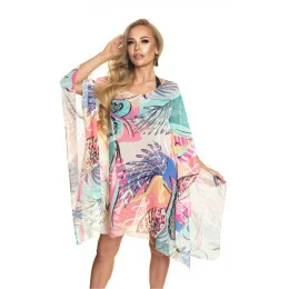 Vzdušná a jemná tunika ze vzorovaného šifonu. Ideální na pláž i mimo ni. Zavazuje se přes hlavu. Rychleschnoucí. Vyrobeno v Polsku.