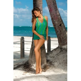 Hledáte něco inspirativního? Zde je nezbytný doplněk: poloprůsvitná ažurová tunika. Jednoduše sexy! Tunika překvapí svou jemností, měkkostí a pružností. Perfektně sedí a sexy zdobí tělo. Ažurový vzor zaručuje nezapomenutelný vzhled. Trojúhelníkový výstřih doplňují sportovní širší ramínka, která na zádech tvoří písmeno "x". V pase je nastavitelná šňůrka, takže si tuniku můžete přizpůsobit svým potřebám. Na obou stranách boků jsou také stahovací šňůrky, takže si můžete upravit délku tuniky. Skvělý návrh pro tuto a určitě každou příští sezónu - prostě Must Have summer.