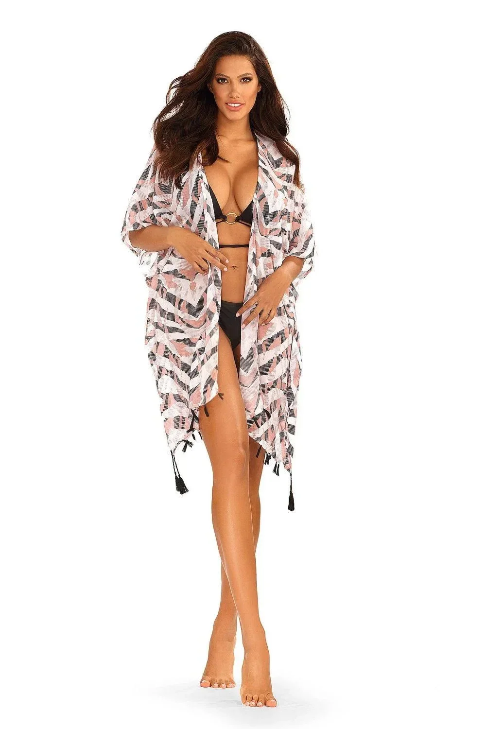 Plážové šaty 11D80SZ 4 SELF - z jemné vzdušné látky - se vzorem - tříčtvrteční rukávy - odolné proti UV záření - nemačkavý materiál