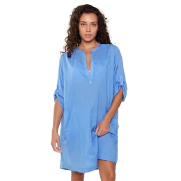 Plážové šaty 7225 blue LingaDore - světle modrá barva - z vysoce jakostní viskózy - tříčtvrteční rukávy - výstřih ve tvaru "V" - na bocích kapsy