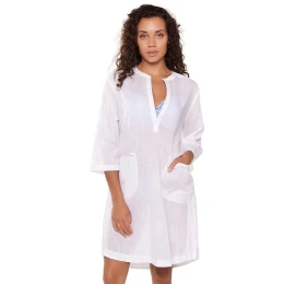 Plážové šaty 7225 white LingaDore - bílá barva - z vysoce jakostní viskózy - tříčtvrteční rukávy - výstřih ve tvaru "V" - na bocích kapsy