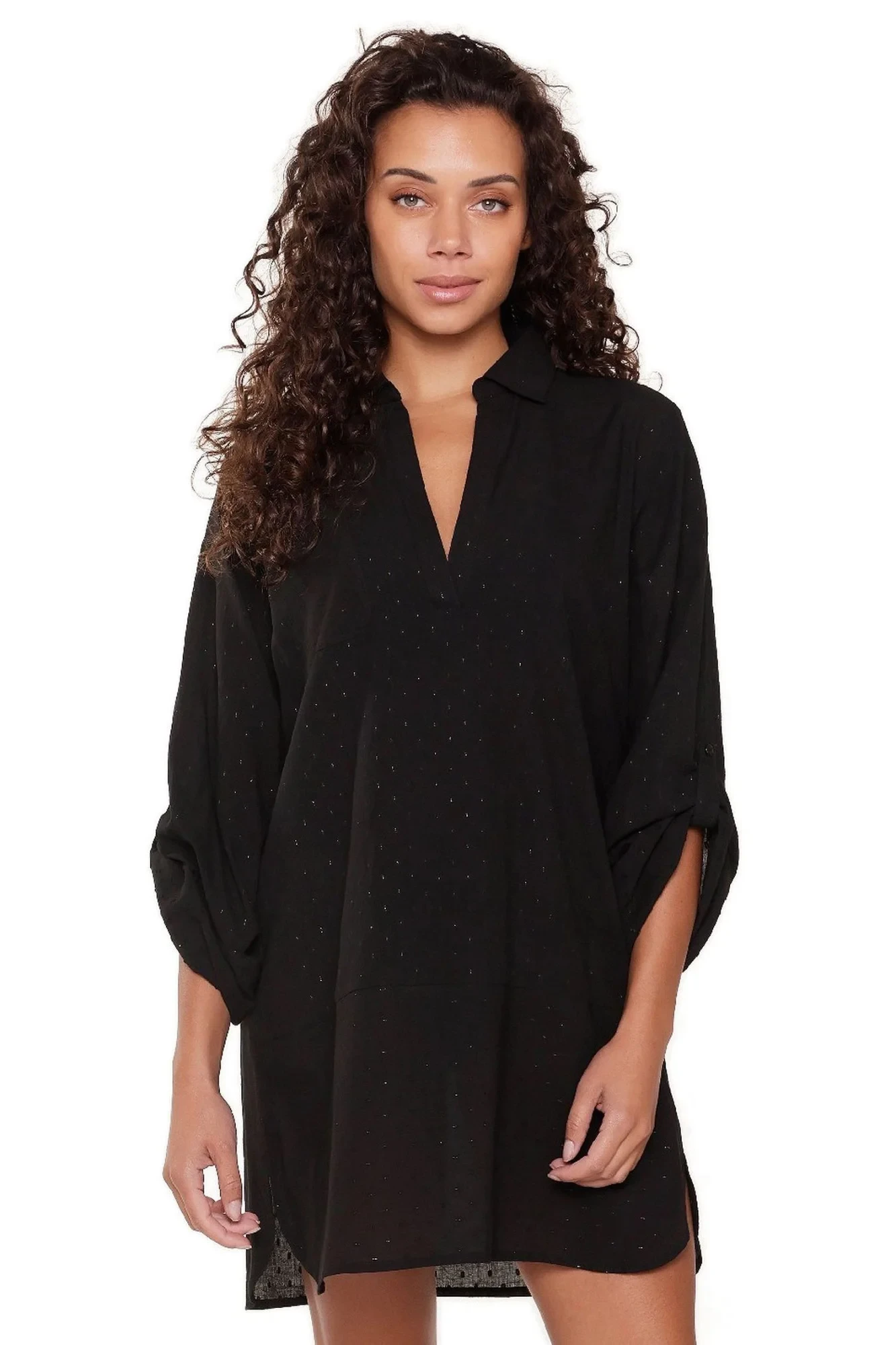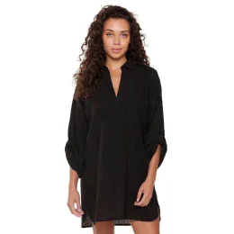 Plážové šaty 7229 black LingaDore - černá barva - z vysoce jakostní viskózy - tříčtvrteční rukávy - výstřih ve tvaru "V"