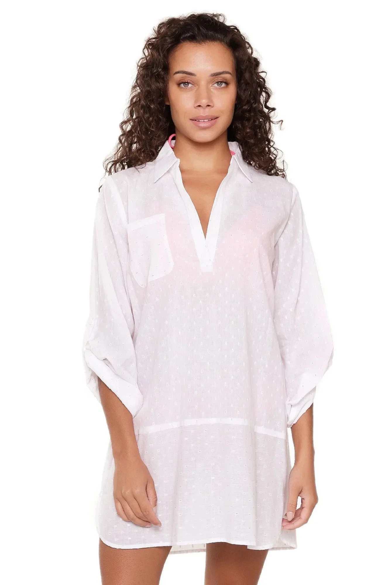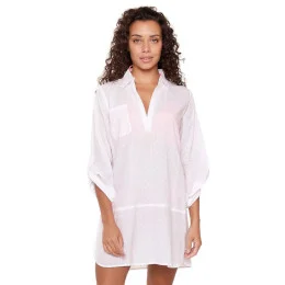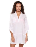 Plážové šaty 7229 white LingaDore - bílá barva - z vysoce jakostní viskózy - tříčtvrteční rukávy - výstřih ve tvaru "V"