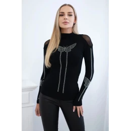 Černá pletená halenka se zirkonovým motýlem je spojením pohodlí úpletu s jemným a stylovým detailem. Halenka je vyrobena z měkkého a elastického úpletu a zajišťuje pohodlné každodenní nošení. Motýl z kubické zirkonie umístěný na halence dodává jedinečné kouzlo a jemnou eleganci. Černá barva pletené halenky je základem, který lze snadno přizpůsobit různým stylům, jak ležérním, tak formálnějším. Motýl z kubické zirkonie je jemný, ale zároveň přitahuje pozornost a dodává halence charakteristický lesk. Motýlí halenka může být skvělou volbou pro mnoho různých příležitostí, od společenských setkání až po formálnější události. Je to také zajímavý detail, který dělá halenku o něco unikátnější. Detaily kubické zirkonie dodávají halence jemnou a jemnou eleganci, která je ideální pro mnoho různých příležitostí. Velikost je univerzální a bude vhodná pro ženy, které nosí velikost S, M nebo L.