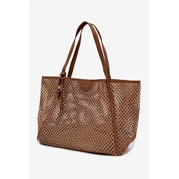 Pletená Shopper Kabelka S Připínákem Velká Světle Hnědá Mella