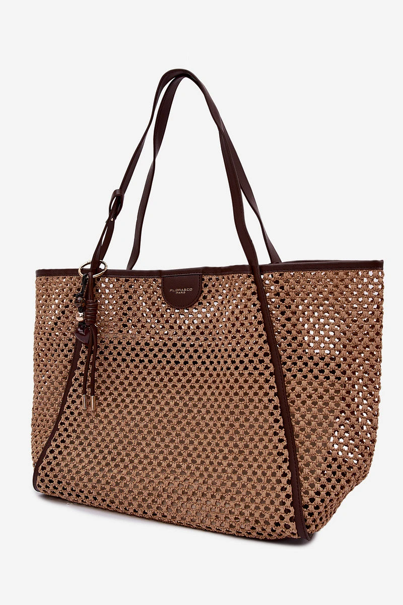 Pletená taška typu shopper s přívěskem Velká hnědá Mella
