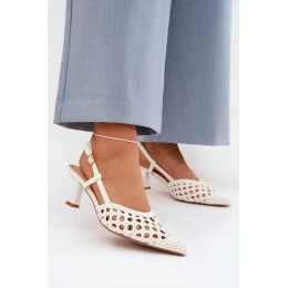 Dámské sandály vyrobené z dekorativního pletení jsou stylovým tipem na teplejší dny. Uzavřené, špičaté nosy zdůrazňují jemnou linii nohy a dodávají obuvi elegantní charakter. Model na tenkém podpatku jemně zeštíhluje siluetu, zajišťujíc ženský vzhled. Zapínání na přezku umožňuje přizpůsobení noze, zvyšuje pohodlí a stabilitu při chůzi. Tyto elegantní sandály skvěle doplní letní outfity – jak na každodenní nošení, tak na výjimečné příležitosti. Při výběru velikosti se řiďte tabulkou velikostí.