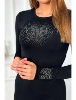 Pletené šaty s motivem mašle jsou spojením pohodlí a stylu. Vyrobeno z měkkého a pružného materiálu, přizpůsobí se postavě a zároveň zajistí pohodlí při nošení. Motiv mašle umístěný na šatech dodává jemnou krásu a vytváří výrazný designový akcent. Černá barva dodává šatům eleganci, díky čemuž se hodí jak pro speciální příležitosti, tak pro příležitostnější příležitosti. Pletené šaty jsou také praktickým řešením pro různá roční období, dají se nosit samostatně v teplejších dnech nebo v chladnějších podmínkách kombinovat s bundou či svetrem. Všestrannost a elegance činí z těchto šatů perfektní volbu pro mnoho příležitostí a motiv mašle jim dodává osobité kouzlo. Velikost je univerzální a bude vhodná pro ženy, které nosí velikost S, M nebo L.
