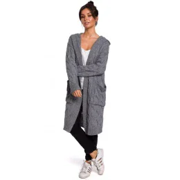 Pletený plisovaný svetr s kapucí BK033 šedý - MOE