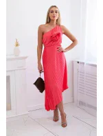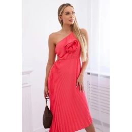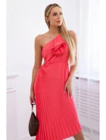 Plisované šaty s květinou růžový neon