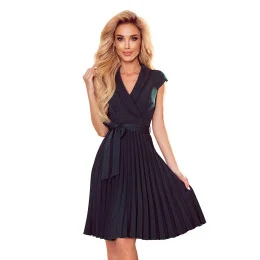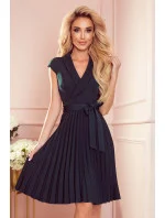 WENDY - dámské plisované šaty s přeloženým obálkovým výstřihem, krátkými rukávy a páskem.