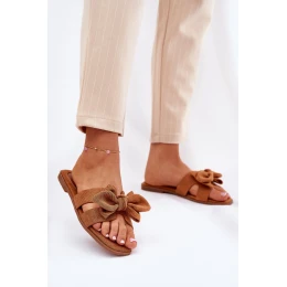 Ploché Dámské Pantofle S Mašlí Camel Tobin