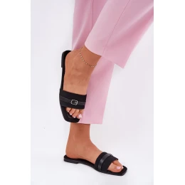 Ploché Dámské Pantofle S Páskem A Přezkou Černé Zilina
