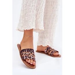 Ploché Dámské Pantofle Se Zlatým Detalem Leopard Noroti