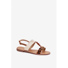Ploché Dámské Sandály S Korálky Leopardí Hnědé Virona