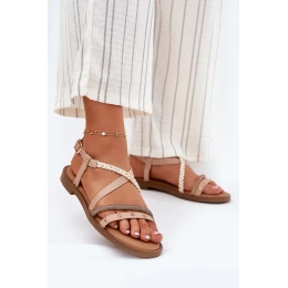Ploché Sandály S Ozdobnými Pásky Vinceza 17379 Béžové