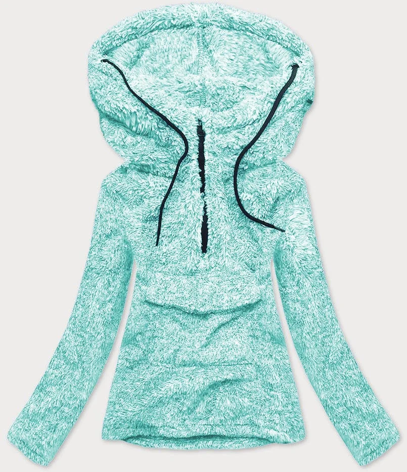 Plyšová melanžová dámská mikina v mátové barvě (HH008-41)