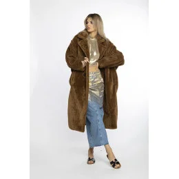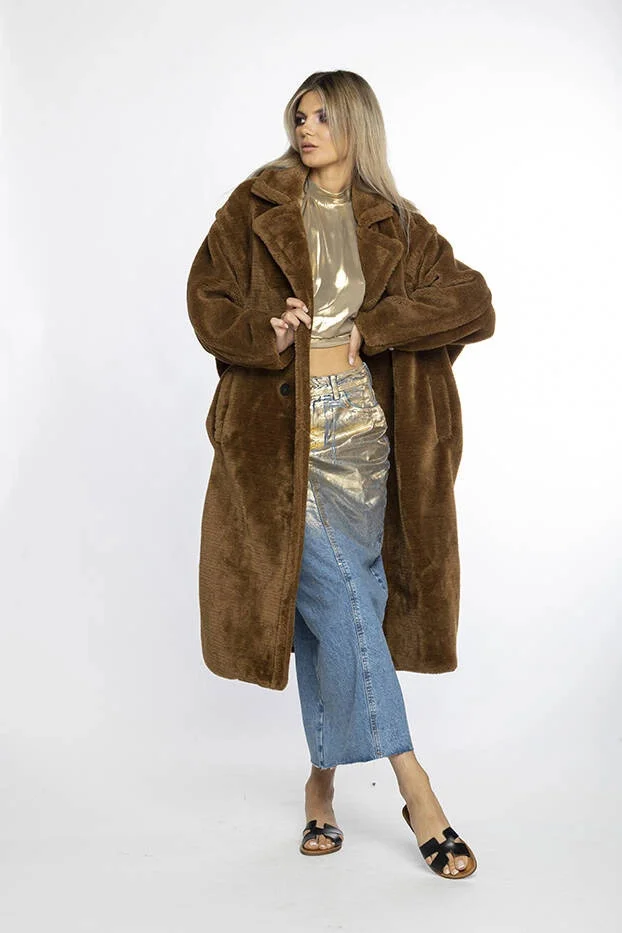 Hnědý dámský plyšový oversize kabát Ann Gissy (AG1-J9172)
