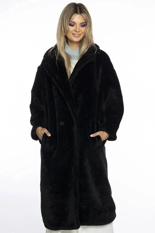 Černý dámský plyšový oversize kabát Ann Gissy (AG1-J9172)