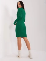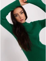 Tmavě zelené dámské žebrované pletené šaty .