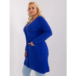 Kobaltový dámský svetr plus size s rozepínáním.