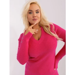 Fuchsiový dámský plus size svetr s výstřihem do V .