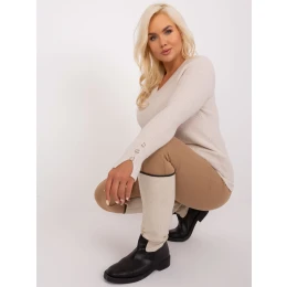 Světle béžový dámský plus size svetr s výstřihem do V .