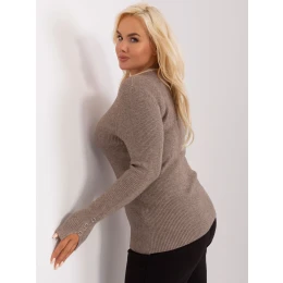 Tmavě béžový plus size svetr s ozdobnými knoflíky .