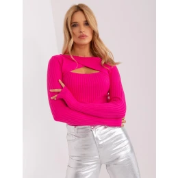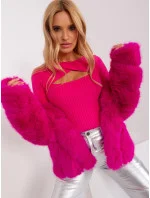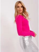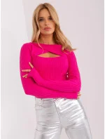 Fuchsiový pruhovaný svetr s vykrojenými detaily.