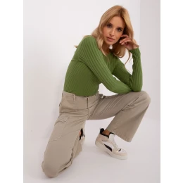 Klasický svetr v khaki barvě s kulatým výstřihem .