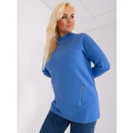 Modrý dámský plus size svetr s polovičním rolákem .