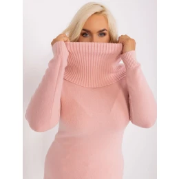 Světle růžový plus size svetr s žebrovanými manžetami .