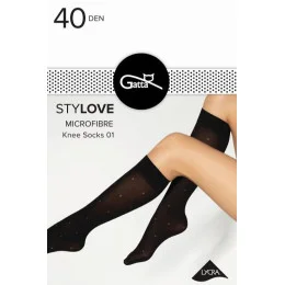 Punčochové zboží značky Gatta, model Stylove 01 40 DEN, vyrobeno z 87% polyamidu a 13% elastanu, bez vyznačených špiček, tloušťka: 40 DEN, dámský výrobek.