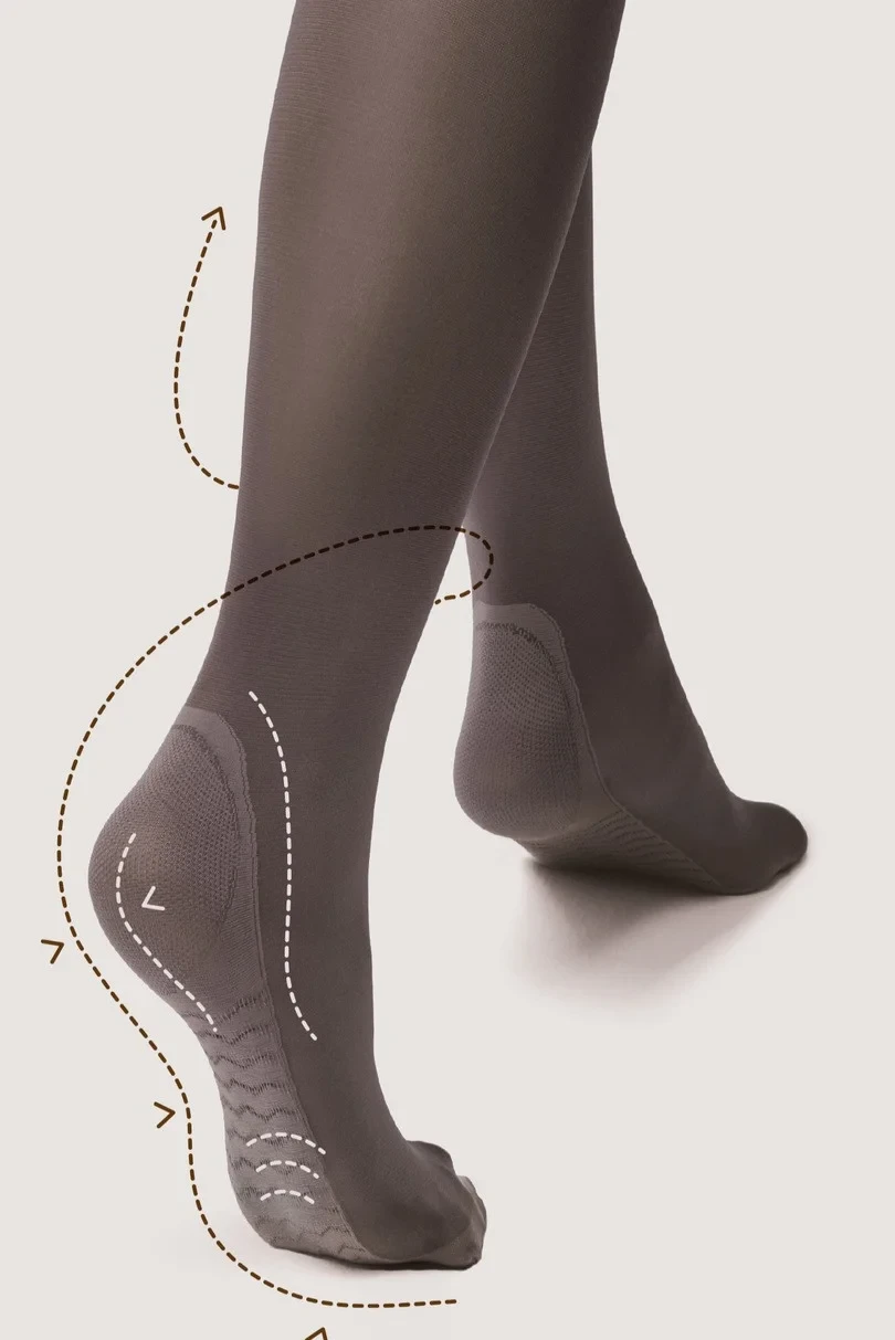 Podkolenky s profilaktickým efektem masáže chodidel a s lemem, který při nošení netlačí.