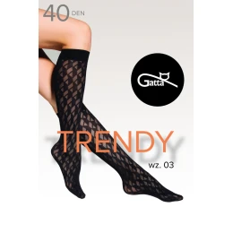 Podkolenky Gatta Trendyline 40 wz. 03 jsou stylovou volbou pro ženy, které ocení módu a pohodlí v jednom. Geometrický, moderní vzor jim dodává jedinečný charakter, díky němuž jsou ideálním doplňkem každodenního i elegantního oblečení. Díky tloušťce 40 DEN nabízejí jemné krytí a lehkost, ideální pro přechodné období. Obsah elastanu zajišťuje dokonalé přilnutí k noze a vysoká kvalita materiálu zaručuje odolnost a pohodlí po celý den.