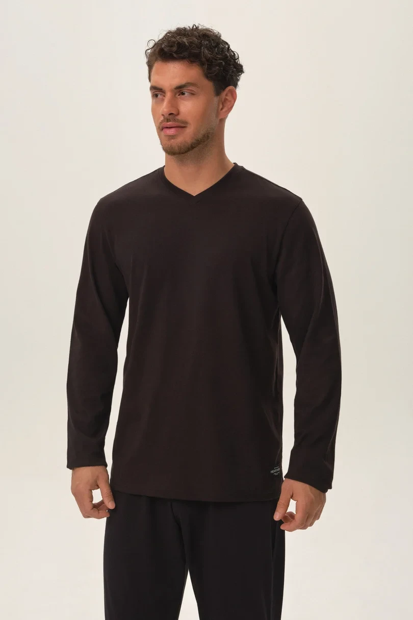 Pánské bavlněné tričko s dlouhým rukávem a výstřihem do V, dva kusy v balení.