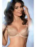 Elegantní béžová push-up podprsenka. Horní část košíčků podprsenky a můstek mezi košíčky pokrývá svůdná krajka. Na dolní část košíčků byla použita vzorovaná tkanina. Mezi košíčky je našita jako stylová ozdoba malá mašlička. Zadní část podprsenky je pružná. Košíčky jsou doplněny o vyjímatelné zvětšující vložky. Podprsenka má svislé kostice a nastavitelná ramínka, která je možné odepnout.