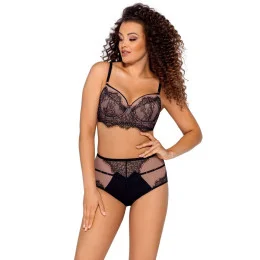 Tento jedinečný push-up je vyroben z béžová pěna podšitá z vnitřní strany měkkou bavlnou a úžasnou černou krajkou zakončenou koketními řasami. Vyjímatelné vycpávky pomáhají zvednout prsa a náležitě je odhalit ve svůdném dekoltu.