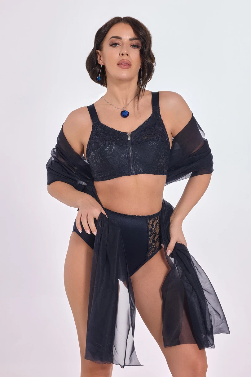 podprsenka Zuza 586 je ideální volbou pro ženy s plnějším poprsím, které si cení komfortu, pohodlí a jemné ženskosti. Model je vyroben z měkkého materiálu bez kostic, což zaručuje volnost pohybu a dokonalé přizpůsobení. Přední zip usnadňuje oblékání a svlékání a jemná krajka s průhlednou podšívkou v horní části dodává šarm a lehkost. Díky širokým, stabilním ramínkům a bavlněnému lemování chránícímu švy podprsenka netlačí a je vhodná pro každodenní nošení po mnoho hodin.