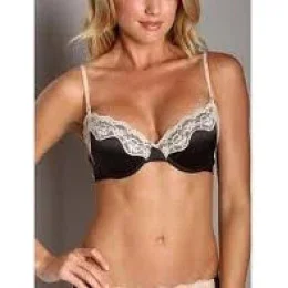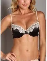 Vystužená podprsenka se strečového saténu lemovaná krajkou v kontrastní barvě.