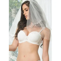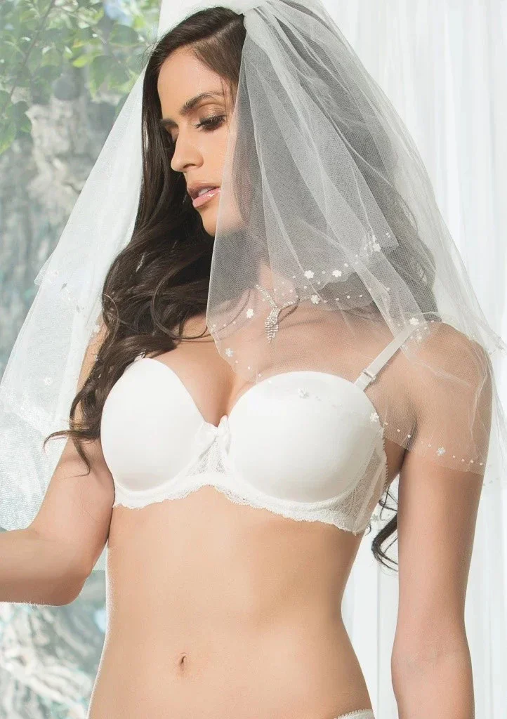 Elegantní push-up podprsenka Pearl A1041 z nové kolekce jaro/léto 2015 od značky Affinitas. Podprsenka má zpevněné košíčky. Podprsenka je hladká a podél obvodu ji zdobí jemná luxusní krajka, ve středu dekoltu je saténová mašlička. Hladká ramínka jsou nastavitelná. Ramínka podprsenky zdobí kamínková spona. Přizpůsobitelná ramínka lze nosit pěti různými způsoby: bez ramínek, za krk, na jeden popruh, do kříže a klasickým způsobem. Na vnitřním obvodu podprsenky jsou aplikovány silikonové proužky zajišťující podporu. Zapínání podprsenky je na tři pozice na dva háčky.