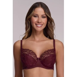 Biustonosz AV 2197 w kolorze czerwonego wina to esencja kobiecej elegancji i komfortu. Miękkie miseczki z panelem bocznym idealnie modelują biust, zapewniając uniesienie i stabilizację na najwyższym poziomie. Bordowy tiul zdobiony subtelnym kwiatowym haftem dodaje lekkości i wyjątkowego uroku, podkreślając zmysłowy charakter bielizny. Regulowane, metalowe ramiączka z antyalergicznym regulatorem gwarantują wygodę noszenia, a dwurzędowe lub trzyrzędowe zapięcie z trójstopniową haftką umożliwia idealne dopasowanie do sylwetki.