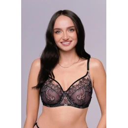 Smyslná měkká podprsenka s kosticemi, která vychází z osvědčeného designu 1396. Model je vyroben ze síťoviny tělové barvy, přes kterou se kolem poprsí ovíjí nápadná černá krajka. Průhledná kombinace materiálů dodává prádlu lehkost a eleganci a zároveň krásně odhaluje přirozený tvar prsou. Kostice poskytuje stabilní oporu a pečlivě vybraná krajka zaručuje pohodlí po celý den. Jedná se o návrh pro ženy, které ocení luxusní vzhled v kombinaci s pohodlím.