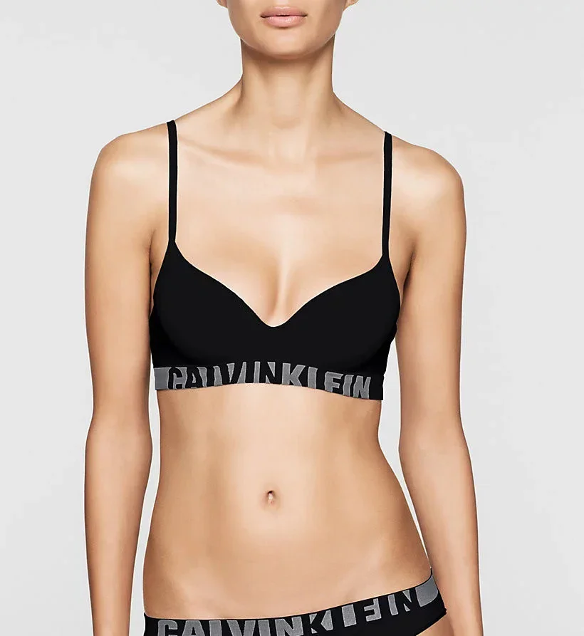 Lehce tvarované košíčky s kosticí, elegantní ramínka s možnostmi univerzálního nošení. Široký elastický pás s logem Calvin Klein.