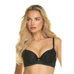 Biustonosz Konrad Giulia w kolorze czarnym to elegancki model typu push-up z wyjmowanymi wkładkami, który idealnie łączy kobiecy styl z funkcjonalnością. Miseczki pokryte subtelnym haftem o geometrycznym wzorze, osadzone na tiulowej bazie, pięknie podkreślają biust i nadają mu zmysłowy kształt. Push-up z możliwością regulacji pozwala dopasować efekt uniesienia do własnych preferencji.