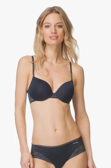 Podprsenka Lightly lined demin QF4448E - Calvin Klein, mírně vyztužená, hladké košíčky, obvod podprsenky krajkový. Materiálové složení 76% polyamid, 24% elastan.
