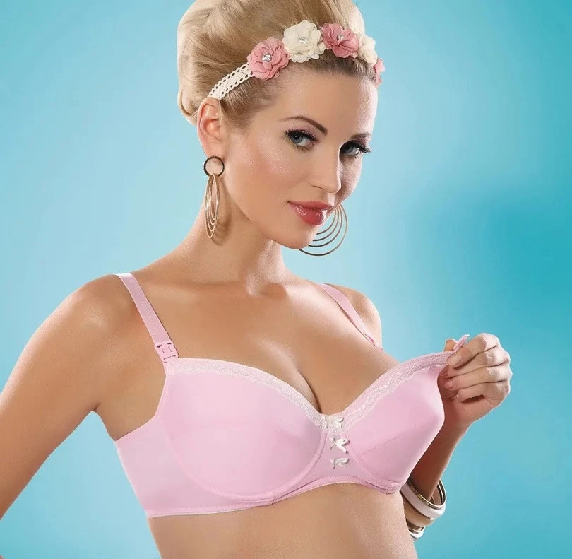 Dámská podprsenka pro kojící ženy, která je vyrobená z hladkého růžového mikrovlákna.
