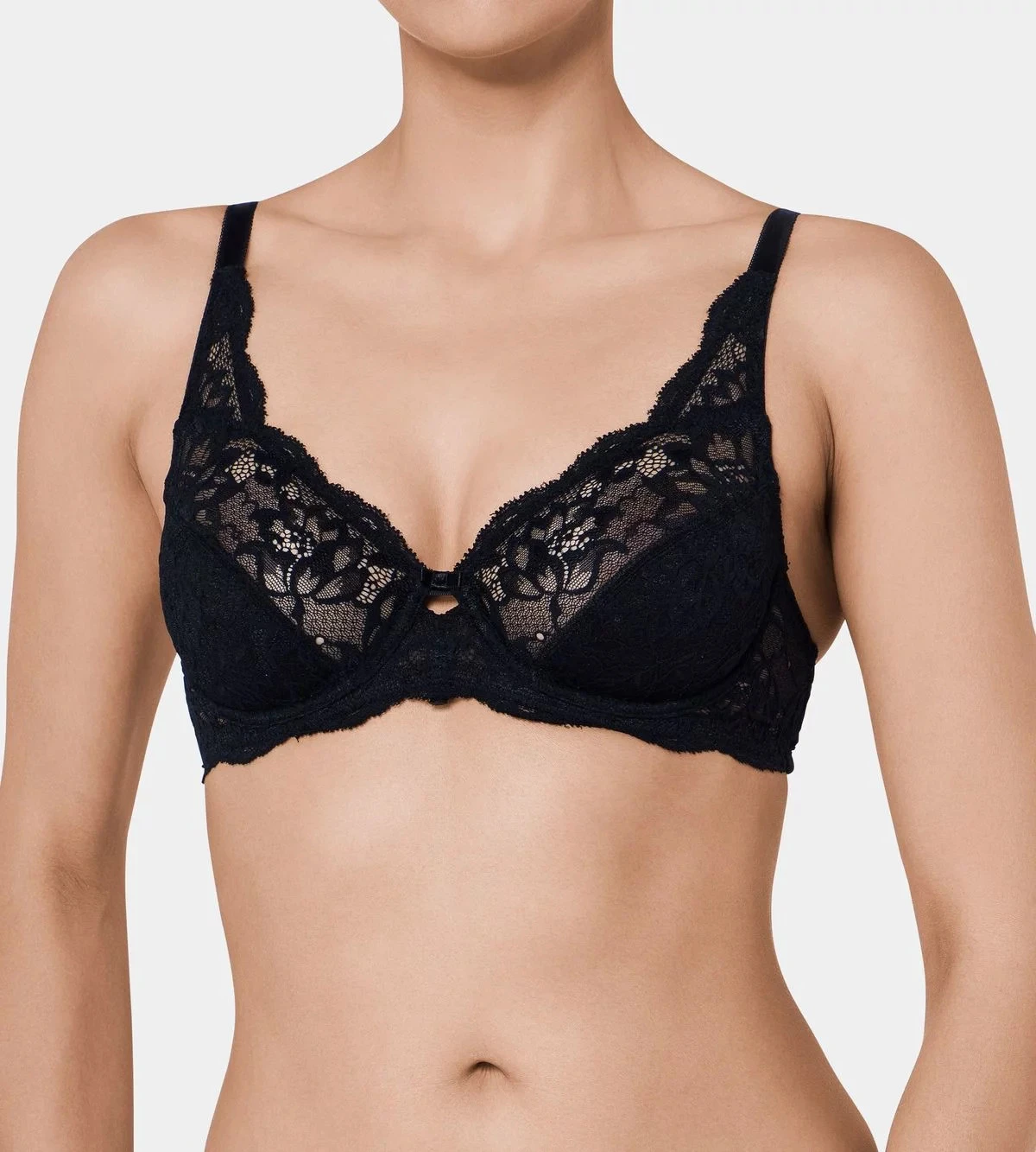 Širší krajková ramínka vepředu nabízejí dokonalou oporu a přizpůsobení až pro plnější košíčky